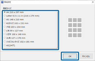 用紙サイズを選択して、[OK]をクリックします。