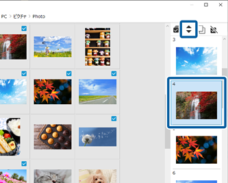 をクリックすると、写真の順番を入れ替えることができます。
