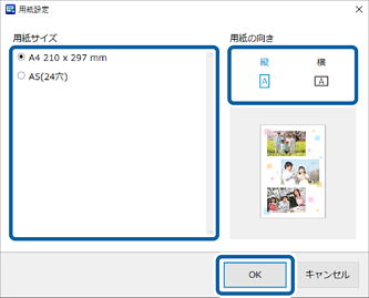 用紙サイズと向きを選択して、[OK]をクリックします。