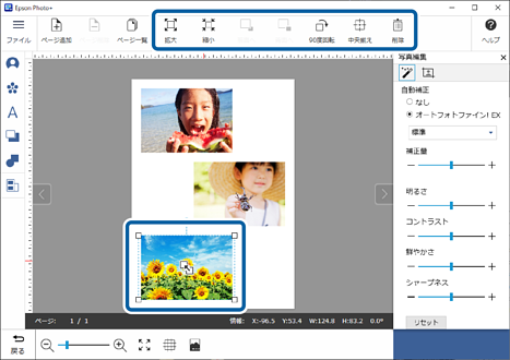 写真をクリックして、写真の位置や大きさなどを調整します。