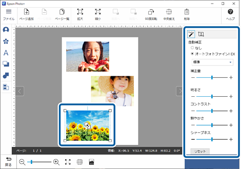 写真をクリックして、写真の明るさなどを調整します。