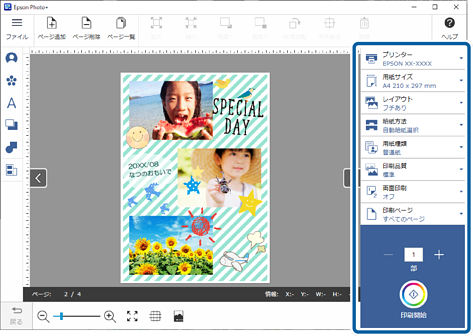 プリンターを選択して、[フォトブック]をクリックします。