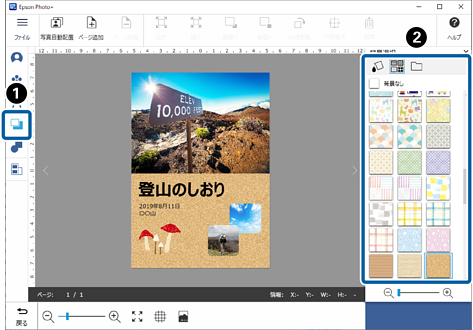右側の背景一覧から、設定したい色やパターンをクリックします。