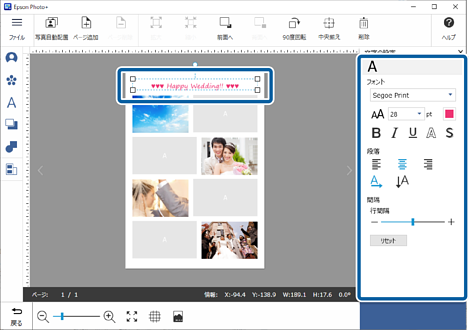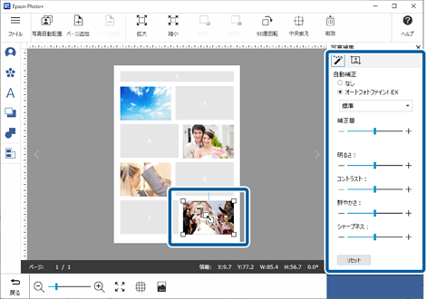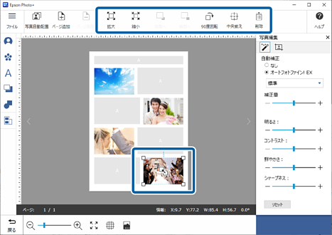写真をクリックして、写真の位置や大きさなどを調整します。