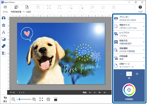 写真をクリックして、写真の位置や大きさなどを調整します。