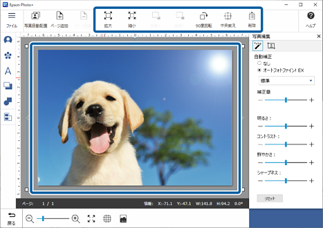 写真をドラッグすると位置の調整ができます。また、画面上部のボタンで写真の拡大、縮小、回転ができます。