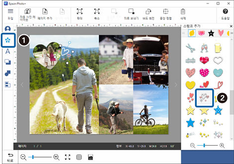 : 오른쪽 스탬프 목록에서 추가하려는 스탬프를 클릭합니다.