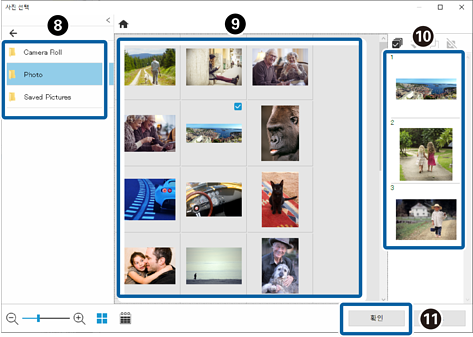 을 클릭하여 사진의 순서를 변경할 수 있습니다. 사진 선택을 해제하려면