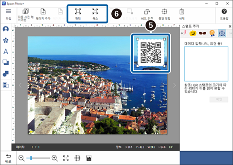 화면 상단의 버튼을 사용하여 QR 코드의 크기를 늘리거나 줄입니다.