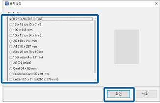 용지 크기를 선택한 후 확인을 클릭합니다.