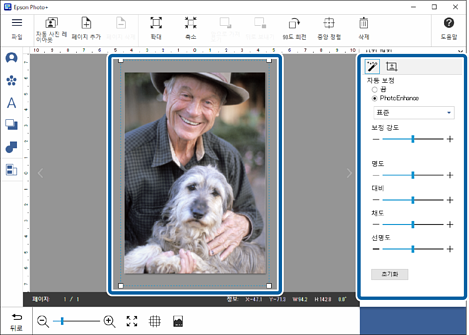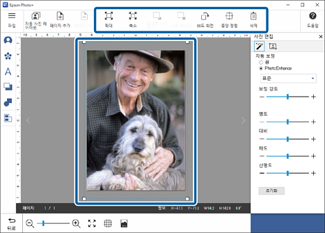 사진을 드래그하여 위치를 조절할 수 있습니다. 화면 맨 위의 버튼을 사용하여 사진을 확대, 축소 및 회전할 수도 있습니다.