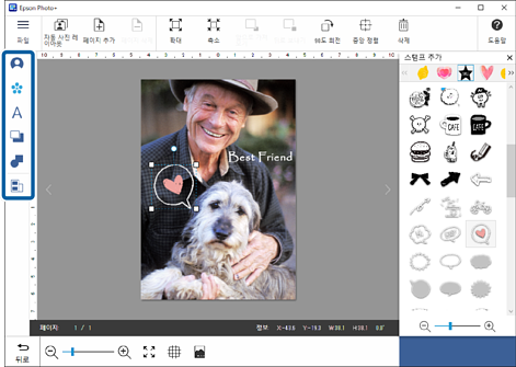 스탬프, 텍스트 등을 추가합니다.