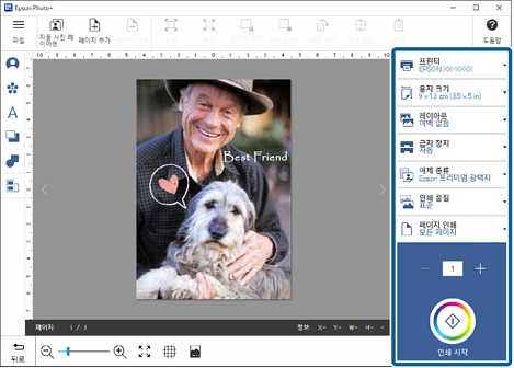 인쇄 설정을 지정한 후 인쇄 시작을 클릭합니다.