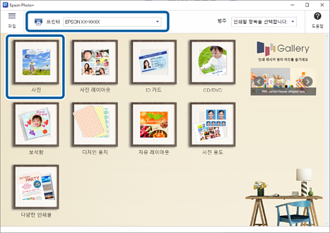 프린터를 선택한 후 사진를 클릭합니다.