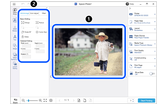 This feature allows you to automatically print high quality images using Epson's own image analysis/processing technology. Select the correction mode according to the subject of the photo. |