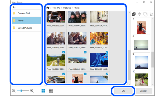 Framed photos are arranged in the order of the photo list. Use the following buttons to edit the contents of the photo list.
