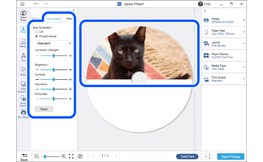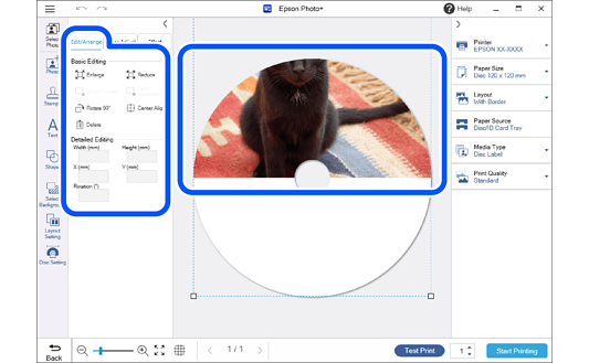 Click Disc Setting to make print settings for the disc label.