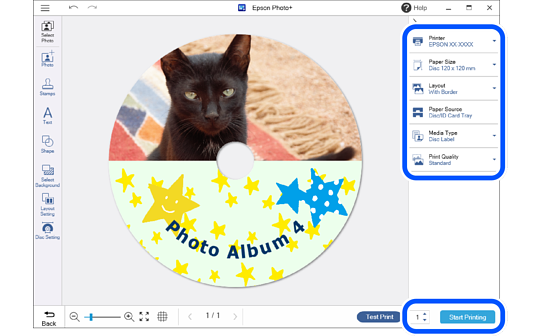 Select the printer, and then click CD/DVD.
