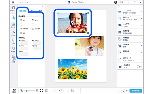 写真をクリックして、写真の位置や大きさなどを調整します。