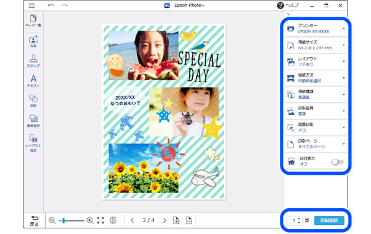 プリンターに用紙をセットする方法や印刷の設定については、プリンター本体の取扱説明書をご覧ください。