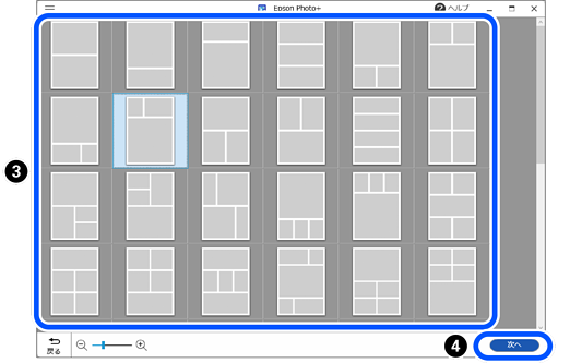で選択された写真に合わせて編集ページが初期化されます。既に編集されている状態から写真選択をやり直した場合、ページが削除されることがあります。