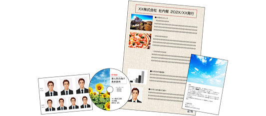 写真をさまざまなレイアウトで印刷したり、ディスクレーベルやフォトブックなどに印刷したりできます。