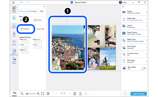 Click the Edit/Arrange tab, and then click Rotate 90°.