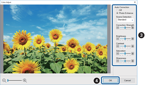 Mit dieser Funktion können Bilder hoher Qualität mittels Epsons eigener Bildanalyse-/-bearbeitungstechnologie automatisch