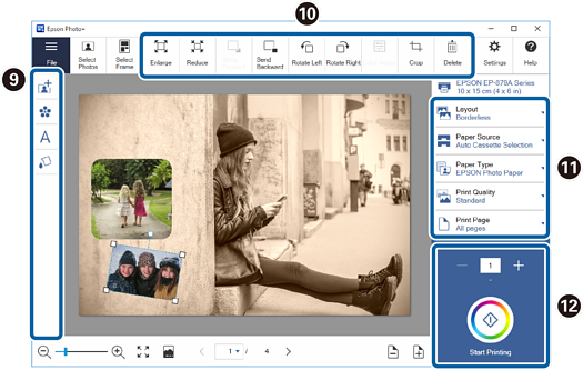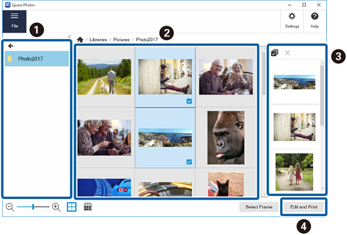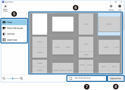 Um das ausgewählte Foto auszudrucken, ohne es dem Rahmen hinzuzufügen, klicken Sie auf Bearbeiten und drucken unter