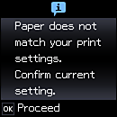 Check the paper size and paper type settings displayed on the control panel. To use the settings, select Confirm using the