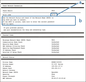 检查MAC地址过滤是否禁用。如果启用,请注册打印机的MAC地址以使其不会被过滤。请参阅访问点随附的文档了解详情。您可以在网络连接报告上的 Network Status 中检查打印机的 MAC 地址。