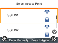 אם תרצה להתחבר ל-SSID שנוצר באמצעות הפונקציה 'קישוריות' במכשיר חכם, בדוק את ה-SSID והסיסמה במסמכים שצורפו למכשיר.