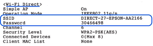 Om du släpper knappen inom 7 sekunder skrivs en anslutningsrapport för nätverket ut. Observera att SSID och lösenordet för Wi-Fi-direkt (enkel AP) inte skrivs ut på rapporten.