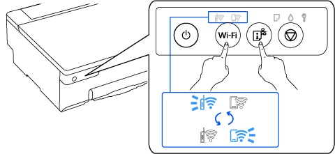 På samma gång som [Wi-Fi]-knappen hålls inne, tryck på knappen [Nätverksstatus] tills lampan