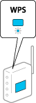 çyrasy gezekleşip ýanyp sönüp başlaýança, printerde [Wi-Fi] düwmesini azyndan 5 sekunt basyp saklaň.