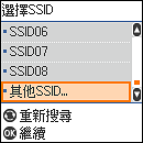 檢查僅 ASCII 字元 (英數字母字元及符號) 用於SSID。若 SSID 包含 ASCII 字元以外的任何字元,印表機則無法顯示此 SSID。