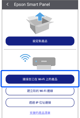 將智慧型裝置與印表機連接至相同網路,並在您使用的應用程式中搜尋印表機。這時應該會顯示印表機。