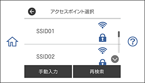 → プリンターと同じアクセスポイントに接続するか、プリンターとスマホをWi-Fi Direct(シンプルAP)接続してください。